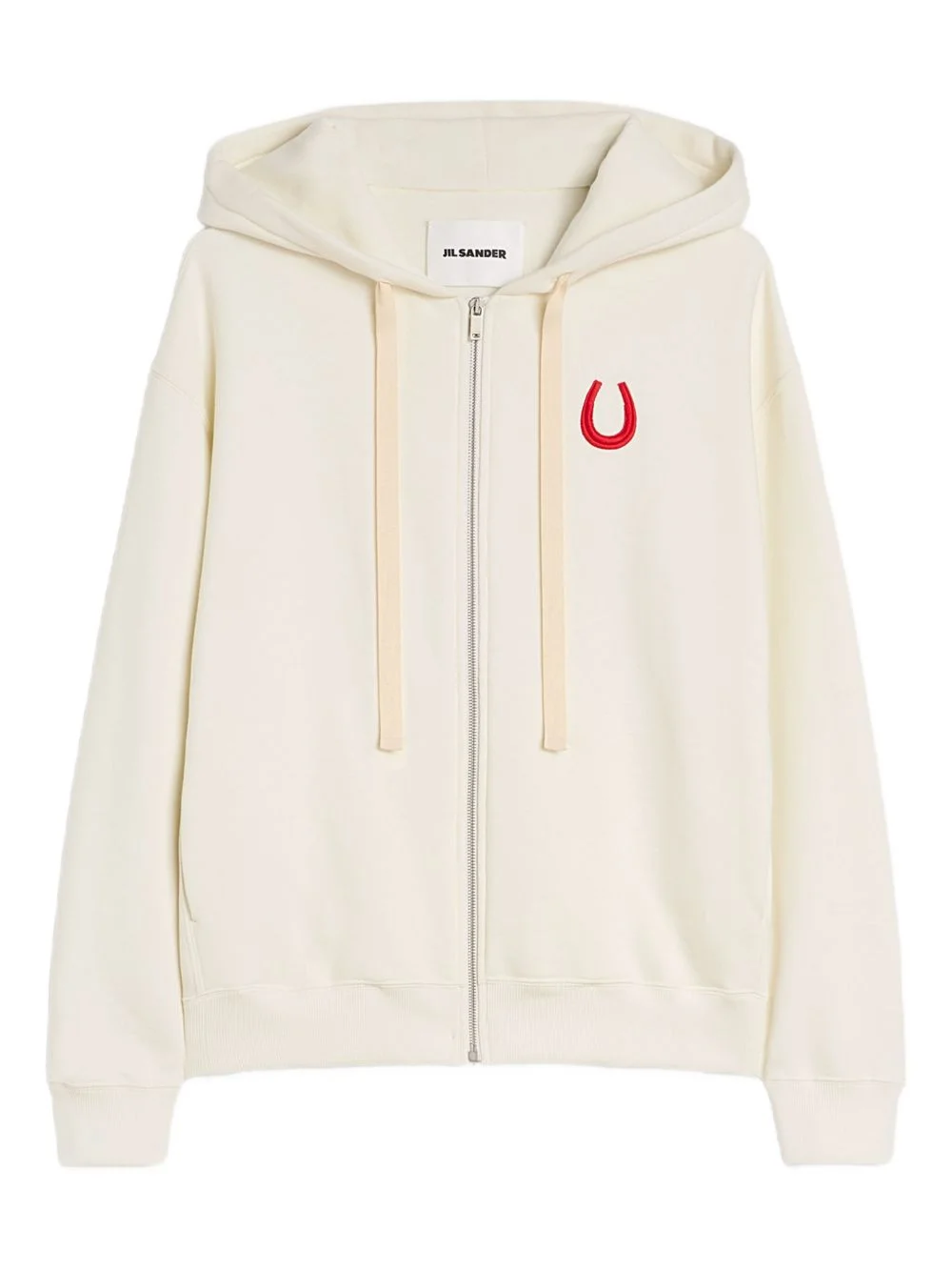 embroidered zip-up hoodie Highlights - Light beige - Cotton terry - Drawstring hood - Front zip closure - Dropped shoulders - Horseshoe embroidery Made in Italy Composition Cotton 100% Washing instructions Read Manufacturer Guidelines