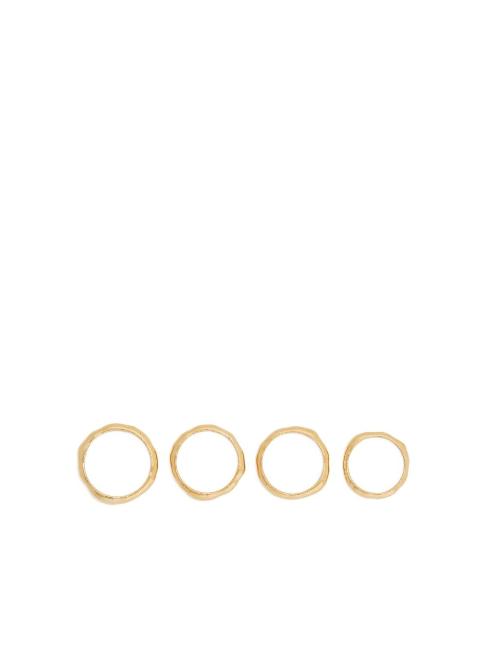 engraved logo irregular-surface rings (set of four) Highlights - Gold - Engraved logo - Irregular surface - Set of four Made in Italy