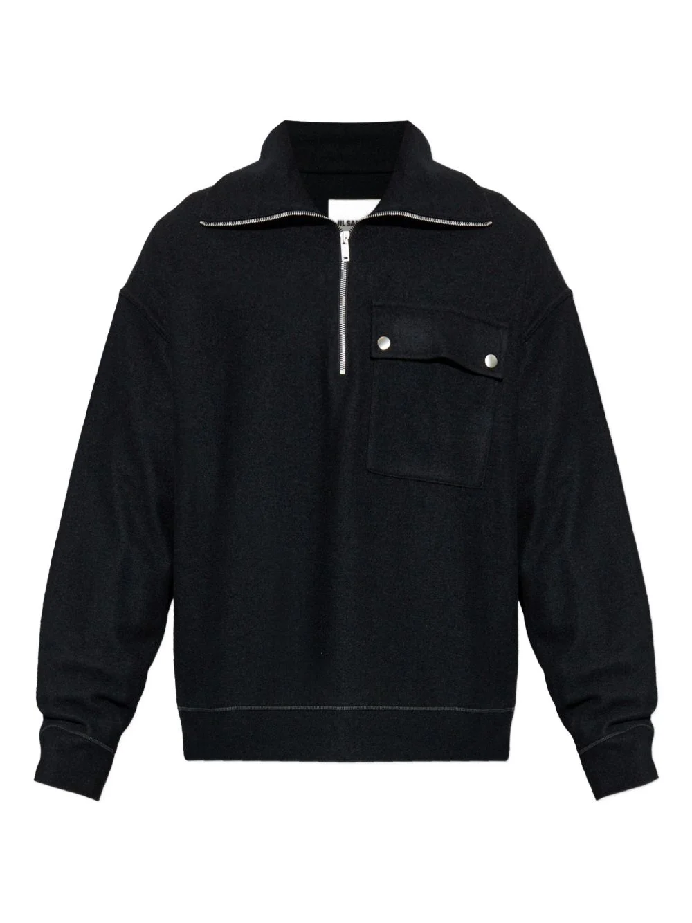 felted sweatshirt Highlights - Black - Wool blend - Zip fastening - Chest pocket Made in Italy Composition Wool 65%, Polyamide 35% Washing instructions Read Manufacturer Guidelines