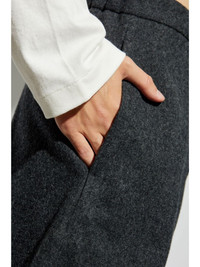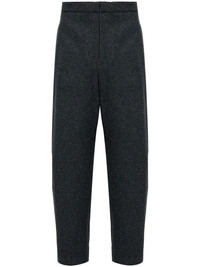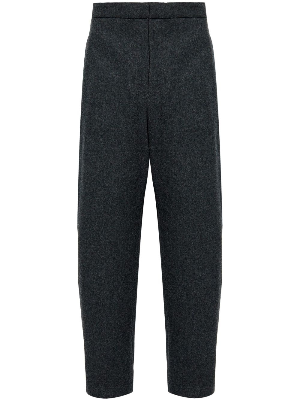 felted trousers Highlights - Dark grey - Virgin wool - Felted finish - Melange effect - Concealed front button, hook and zip fastening - Two side inset pockets - Two rear welt pockets - Straight leg Made in Italy Composition Virgin Wool 100%