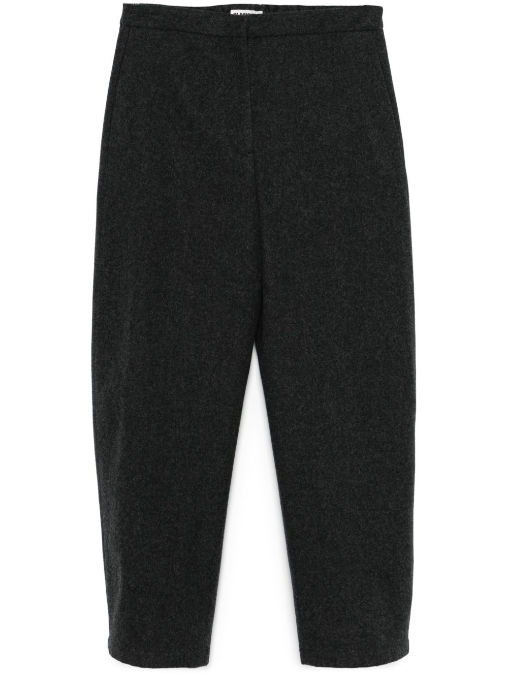 felted wool trousers Highlights - Charcoal grey - Concealed front button, hook and zip fastening - Rear elasticated waistband - Two side slit pockets - Two rear welt pockets Made in Italy Composition Outer: Wool 100% Lining: Viscose 100% SIZE & FIT Model measurements Height 5 ft 11 in(1.8 m) Bust/Chest 33.07 in(84 cm) Hips 37.4 in(95 cm) Waist 25.19 in(64 cm) FittingInformation Designed for a tapered fit, these trousers allow for a close fit at the waist and a loose unrestricted fit over the leg with a closer fit towards the ankle The partially elasticated waistband offers increased movement and comfort at the waist Made from a midweight non-stretch fabric