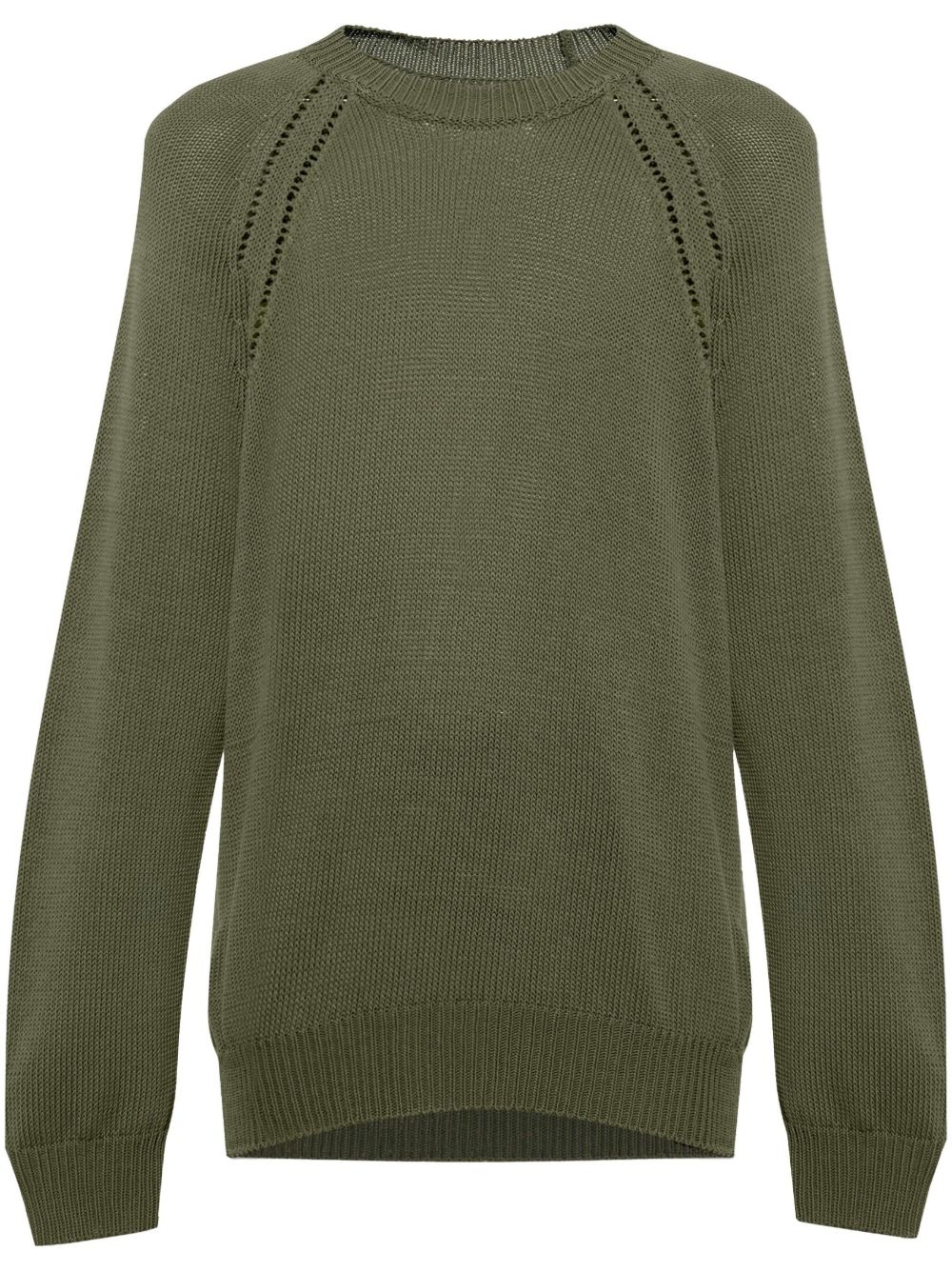 fine-knit cotton jumper Highlights - Olive green - Crew neck - Long sleeves - Ribbed cuffs and hem Made in Italy Composition Cotton 100% SIZE & FIT FittingInformation Designed for a regular fit, offering a comfortable loose fit throughout the body The ribbed hem offers a close, comfortable fit Made with a midweight knit, this piece offers some stretch Washing instructions Read Manufacturer Guidelines