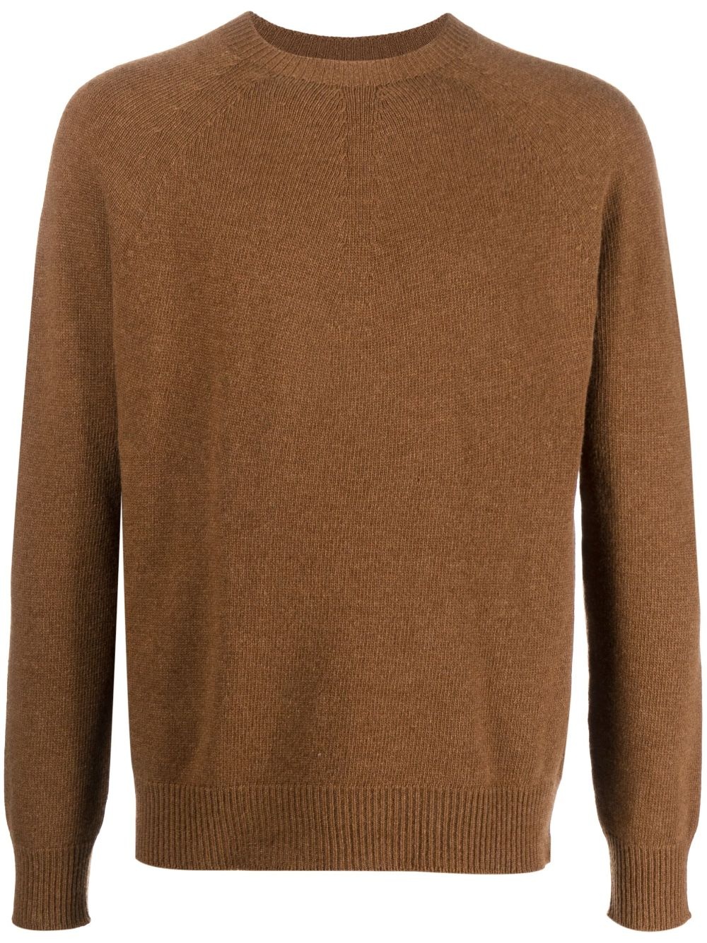 fine-knit wool-cashmere jumper Highlights - Brown - Virgin wool-cashmere blend - Fine knit - Crew neck - Long sleeves - Ribbed cuffs and hem - Straight hem Made in Italy Composition Virgin Wool 70%, Cashmere 30% SIZE & FIT Model measurements Height 6 ft 1 in(1.86 m) Bust/Chest 36.61 in(93 cm) Hips 37 in(94 cm) Waist 28.74 in(73 cm) FittingInformation Designed for a relaxed fit, this piece allows for comfort and movement when worn The ribbed hem offers a close, comfortable fit Made with a midweight knit, this piece offers some stretch This piece fits true to size – take your usual size Washing instructions Dry Clean Only