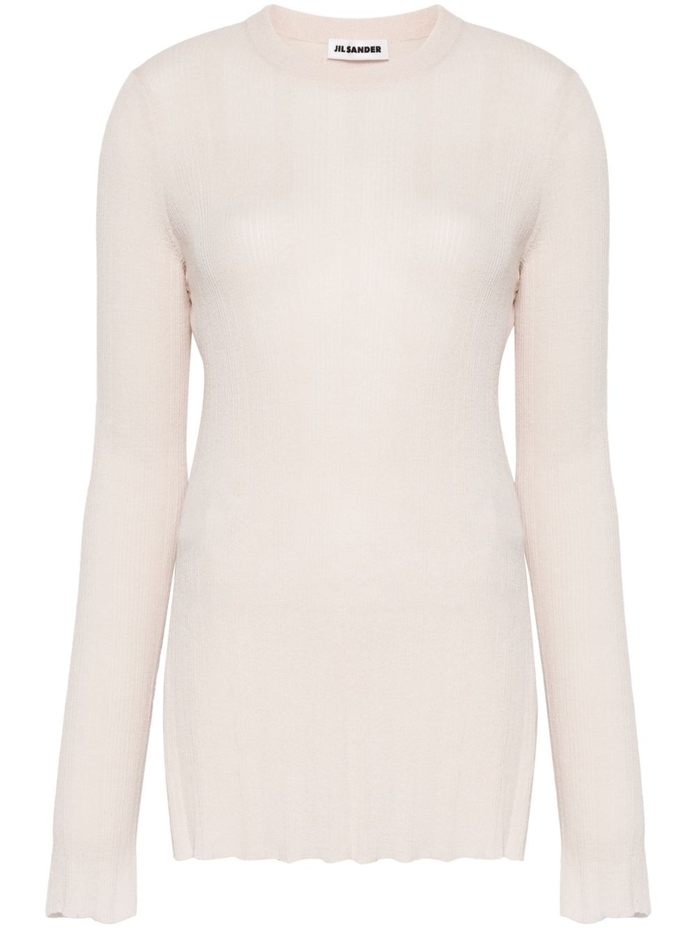 fine-ribbed top Highlights - Blush beige - Side slits - Crew neck - Long sleeves Made in Italy Composition Wool 100% SIZE & FIT Model measurements Height 5 ft 10 in(1.77 m) Bust/Chest 31.88 in(81 cm) Hips 36.22 in(92 cm) Waist 24.01 in(61 cm) FittingInformation Designed for a relaxed fit, this piece allows for comfort and movement when worn Made with a midweight knit, this piece offers some stretch