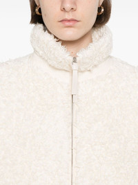 fleece jacket Highlights - White - Front zip fastening - Two side zip-fastening pockets - Stand-up collar - Long sleeves Made in Italy Composition Lining: Cotton 100% Outer: Sheepskin 100%, Cotton 100% SIZE & FIT Model measurements Height 5 ft 10 in(1.77 m) Bust/Chest 31.1 in(79 cm) Hips 34.64 in(88 cm) Waist 24.01 in(61 cm) FittingInformation Designed to be unstructured, offering a loose fit throughout Made from a midweight non-stretch fabric, this piece offers minimal elasticity when worn