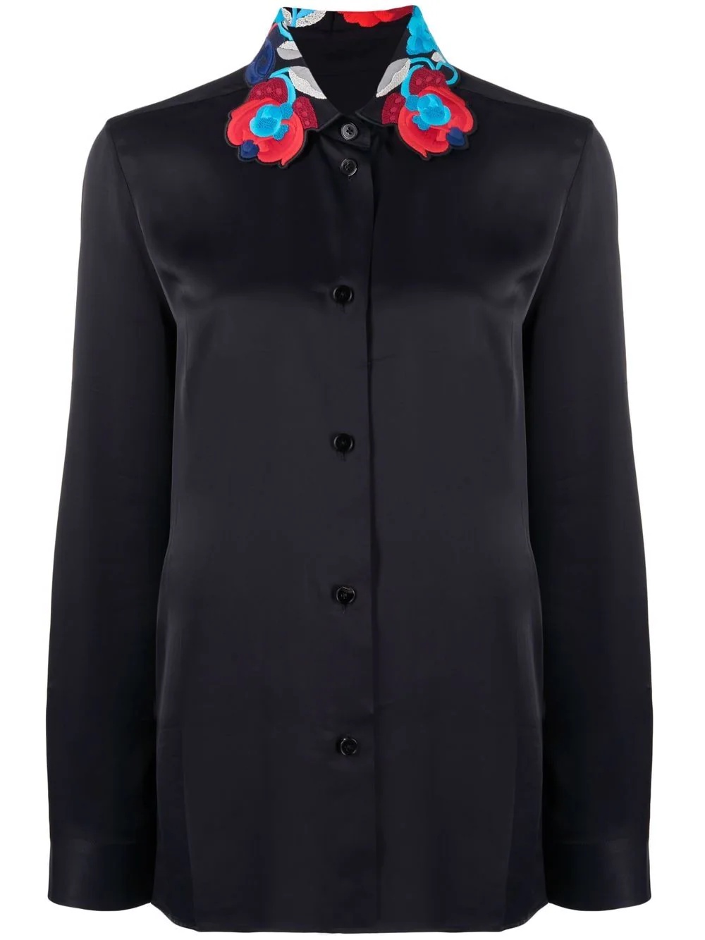 floral-embroidered collar satin shirt