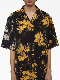 floral-print cotton shirt Demonstrating the brand's expertise in classic designs, this shirt from Jil Sander is covered in a warm-tone floral print. Highlights - Black/ochre yellow - Cotton - All-over floral print - Notched collar - Front button fastening - Short sleeves Made in Italy Composition Outer: Viscose 100% Lining: Cotton 100%