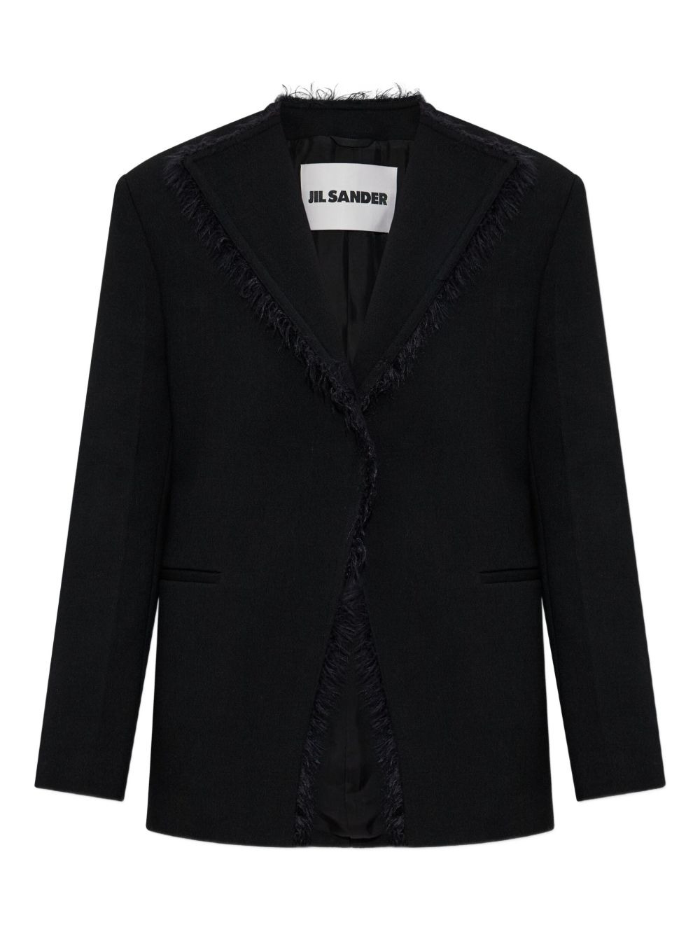 fringed lapel jacket Highlights - Black - Wool - Frayed edges - Notched lapel - Long sleeves - Straight hem Made in Italy Composition Virgin Wool 91%, Polyester 9% Washing instructions Read Manufacturer Guidelines