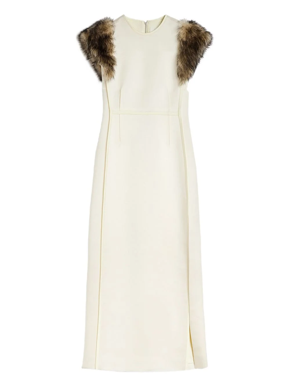 fur-trimmed sleeveless maxi dress Highlights - Cream - Contrasting fur trim - Deep armholes - Vertical seam detailing Made in Italy Composition Polyester 70%, Silk 30% Washing instructions Read Manufacturer Guidelines