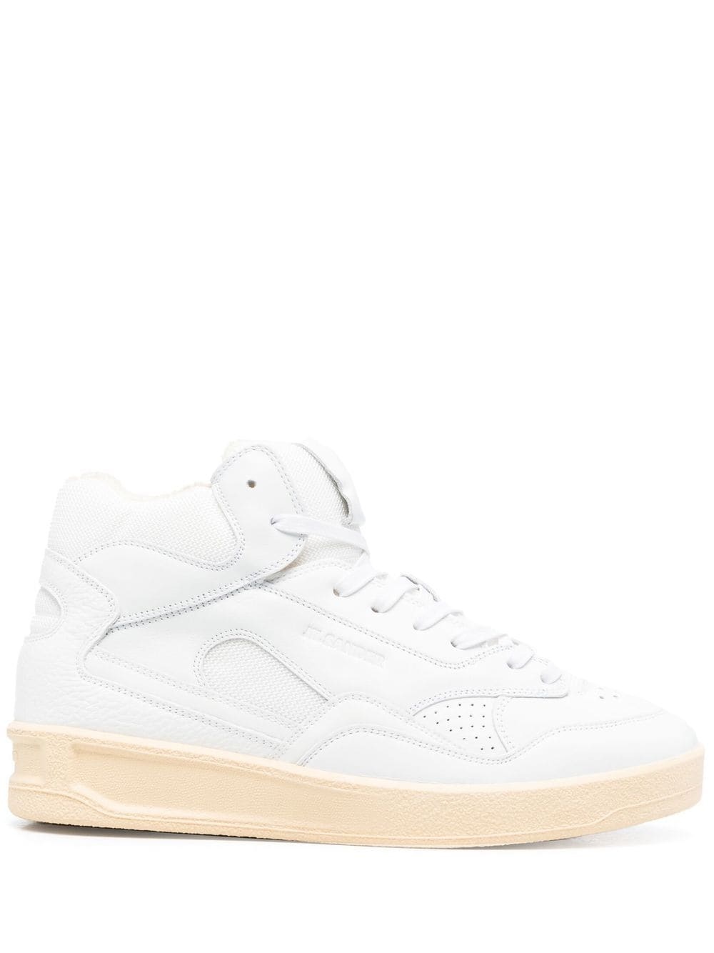 gum-sole high-top sneakers optical white calf leather perforated design round toe front lace-up fastening gum-rubber sole Imported Composition Outer: Calf Leather 100%, Fabric 100% Lining: Calf Leather 100%, Fabric 100% Sole: Rubber 100% SIZE & FIT Measurement HEEL 1.37 in(3.5 cm) Sole height 0.78 in(2 cm)