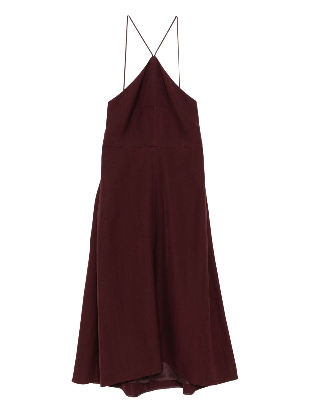 halter-neck dress Highlights - Burgundy - Rear zip fastening - Straight hem Made in Italy Composition Outer: Viscose 58%, Silk 42% Lining: Viscose 95%, Elastane 5% SIZE & FIT Model measurements Height 5 ft 10 in(1.78 m) Bust/Chest 31.88 in(81 cm) Hips 37 in(94 cm) Waist 25.19 in(64 cm) FittingInformation Designed for a close fit at the chest and waist with a loose fit at the hip The adjustable shoulder straps allow for a preferred fit when worn Made from a midweight non-stretch fabric This piece fits large – take one size down