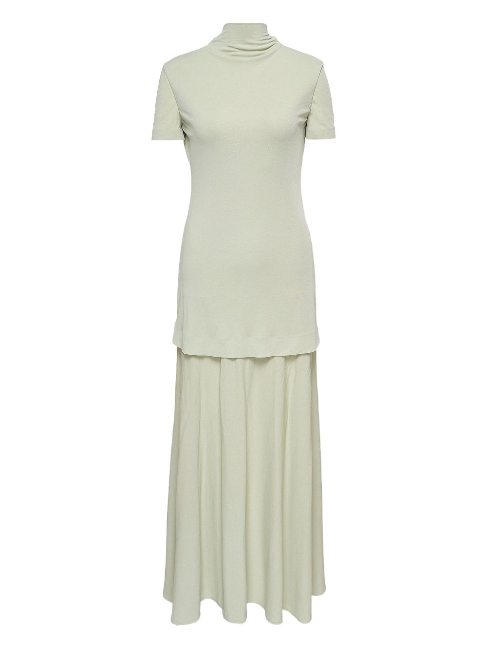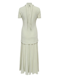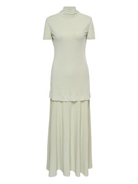 high-neck flared dress Highlights - Light green - High neck - Short sleeves - Layered detail - Pleated skirt Made in Italy Composition Viscose 82%, Polyamide 18% Washing instructions Read Manufacturer Guidelines