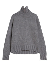 high-neck ribbed-cuff sweater Highlights - Grey - High neck - Long sleeves - Dropped shoulders - Ribbed trim Made in Italy Composition Cashmere 88%, Cotton 10%, Polyester 2% SIZE & FIT FittingInformation Designed for a relaxed fit, this piece allows for comfort and movement when worn Constructed with additional length on the sleeve Made with a midweight knit, this piece offers some stretch Washing instructions Read Manufacturer Guidelines