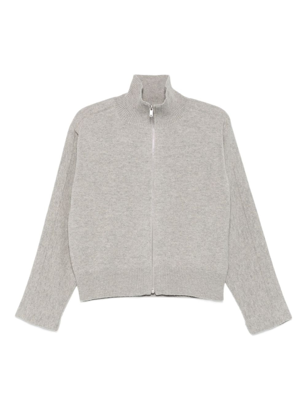 high-neck zip-front cardigan