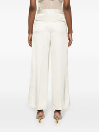 high-rise twill palazzo trousers Highlights - Ecru - Twill weave - High-rise - Concealed fly and button fastening - Belt loops - Pressed crease - Two side inset pockets - Two rear jetted pockets - Wide leg Made in Italy Composition Lining: Cotton 100% Outer: Viscose 83%, Silk 17% SIZE & FIT Model measurements Height 5 ft 11 in(1.8 m) Bust/Chest 31.49 in(80 cm) Hips 36.61 in(93 cm) Waist 24.4 in(62 cm) FittingInformation Designed with a wide-leg cut, these trousers allow for a close fit at the waist and offer a loose and roomy fit over the leg Made from a midweight non-stretch fabric This piece fits true to size – take your usual size
