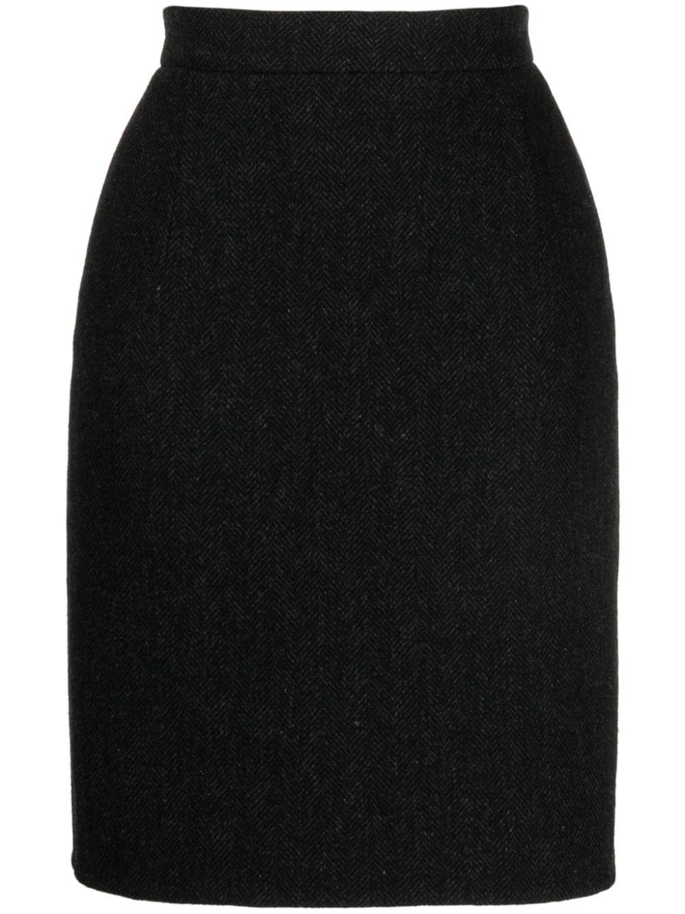 high-waist herringbone skirt