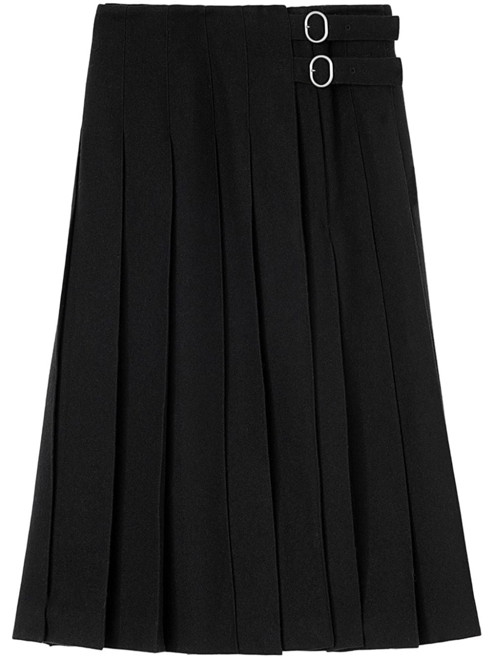 high-waist pleated midi skirt Highlights - Black - Virgin wool - High-waisted - Side buckle fastening - Fully pleated - Straight hem - Calf-length Made in Italy Composition Virgin Wool 100%