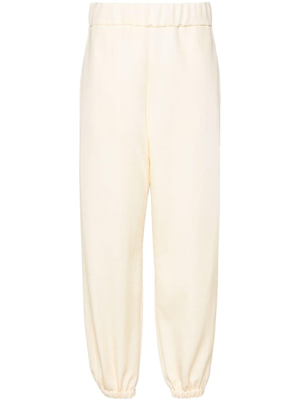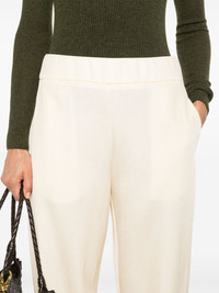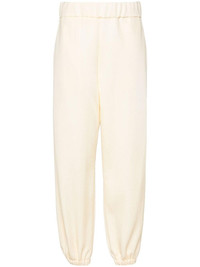 high-waist tapered trousers Highlights - Champagne - High waist - Elasticated waistband - Two side slit pockets - Elasticated ankles - Tapered leg - Unlined Made in Italy Composition Outer: Viscose 78%, Polyamide 22% Lining: Viscose 100% SIZE & FIT Model measurements Height 5 ft 11 in(1.8 m) Bust/Chest 33.07 in(84 cm) Hips 37.4 in(95 cm) Waist 25.19 in(64 cm) Measurement FRONT RISE 12.59 in(32 cm) WAIST 33.85 in(86 cm) HIPS 47.24 in(120 cm) INSIDE LEG 28.34 in(72 cm) FittingInformation Designed for a tapered fit, these trousers allow for a close fit at the waist and a loose unrestricted fit over the leg with a closer fit towards the ankle The elasticated waist and hem offer a secure, comfortable fit Made from a midweight non-stretch fabric, this piece offers minimal elasticity when worn This piece fits true to size – take your usual size