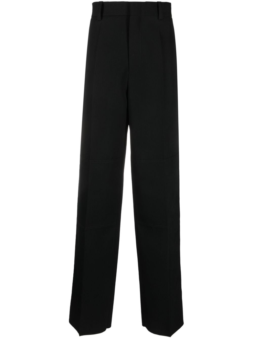 high-waist wool wide-leg trousers Highlights - Black - Wool - Cotton - High-waisted - Pressed crease - Belt loops - Wide leg - Concealed front fastening - Two side slash pockets - Two rear welt pockets Made in Italy Composition Lining: Cupro 100%, Cotton 100% Outer: Wool 100% SIZE & FIT Model measurements Height 6 ft 2 in(1.87 m) Bust/Chest 36.41 in(92.5 cm) Hips 35.43 in(90 cm) Waist 29.52 in(75 cm) Washing instructions Dry Clean Only