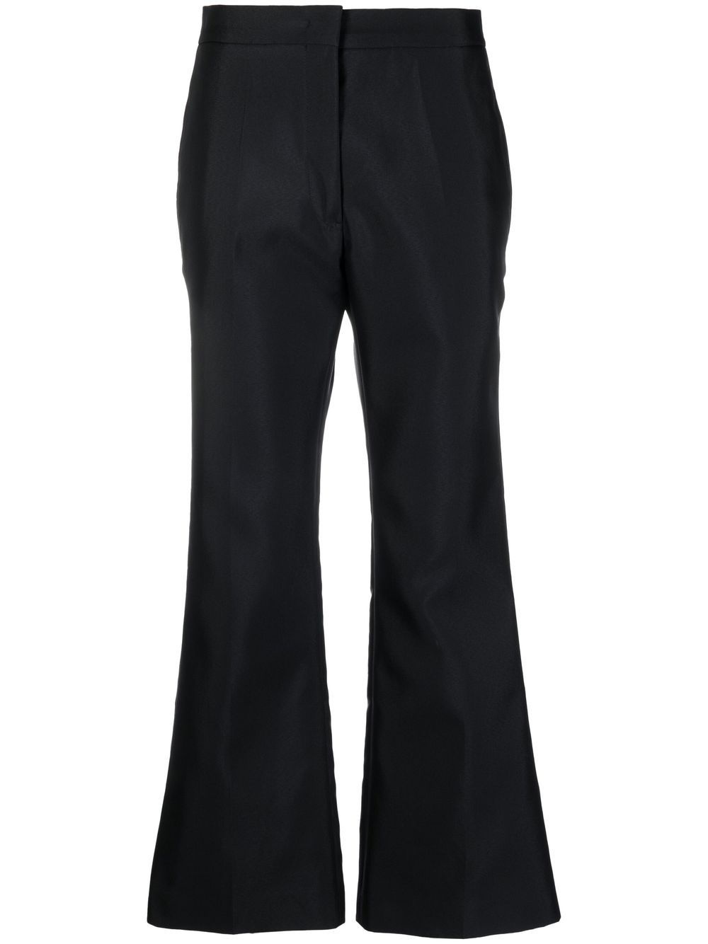 high-waisted flared trousers Highlights - Blue - Cotton - Silk blend - High-waisted - Concealed front fastening - Two side slit pockets - Two rear welt pockets - Cropped leg Made in Italy Composition Outer: Polyamide 65%, Silk 35% Lining: Cotton 100% SIZE & FIT Model measurements Height 5 ft 11 in(1.8 m) Bust/Chest 33.07 in(84 cm) Hips 37.4 in(95 cm) Waist 25.19 in(64 cm) FittingInformation This piece fits true to size. We recommend you get your regular size Designed to be fitted at the waist and hips, loose over the leg Made with a mid-weight non-stretch fabric
