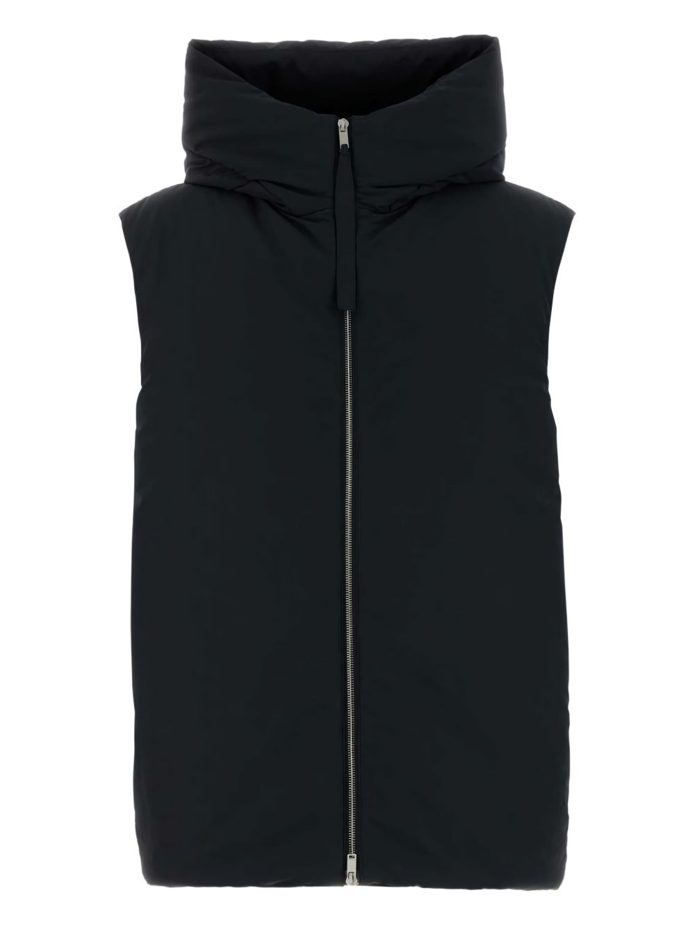 hooded down gilet Highlights - Black - Down padding - Feather padding - Zip fastening - High neck Made in Italy Composition Outer: Polyester 100% Lining: Polyester 100% Down 85%, Feather 15% Washing instructions Read Manufacturer Guidelines