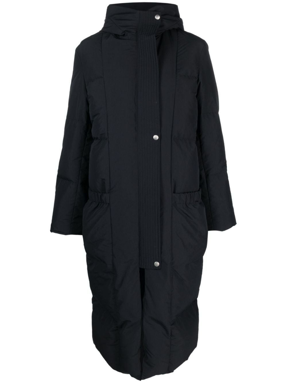 hooded padded coat Highlights - Black - Goose down - Padded design - Slouchy hood - Stand-up collar - Concealed front zip fastening - Front press-stud fastening - Long sleeves - Two front patch pockets - Straight hem - Below-knee length Made in Italy Composition Outer: Polyester 100% Lining: Polyester 100%, Goose Down 90%, Goose Feather 10% SIZE & FIT Model measurements Height 5 ft 10 in(1.77 m) Bust/Chest 29.92 in(76 cm) Hips 34.25 in(87 cm) Waist 23.62 in(60 cm) FittingInformation Designed to be unstructured, offering a loose fit throughout Made from a padded non-stretch fabric, giving it no natural elasticity This piece fits true to size – take your usual size Washing instructions Dry Clean Only