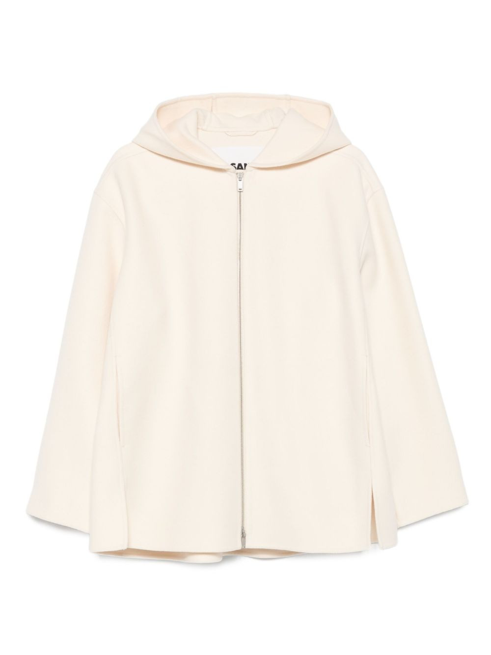 hooded zip-front jacket Highlights - Ecru - Hooded neckline - Front zip fastening - Long sleeves - Buttoned cuffs - Straight hem Made in Italy Composition Lining: Viscose 95%, Spandex/Elastane 5% Outer: Wool 100% Washing instructions Dry Clean Only