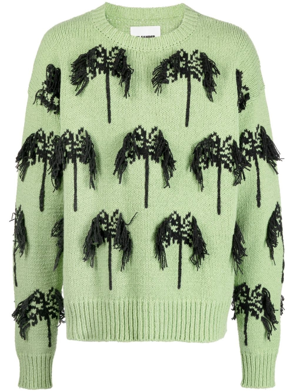 Intarsia fringed cotton-blend jumper Highlights - Light green/black - Cotton-wool blend - Intarsia knit - Crew neck - Fringe detailing - Long sleeves - Drop shoulder - Straight hem Made in Italy Composition Cotton 50%, Wool 50% SIZE & FIT Model measurements Height 6 ft 2 in(1.87 m) Bust/Chest 36.22 in(92 cm) Hips 37.79 in(96 cm) Waist 28.34 in(72 cm) FittingInformation Designed to be unstructured, offering a loose fit throughout Constructed with additional length on the sleeve Made with a heavyweight knit, this piece offers some stretch This piece fits true to size – take your usual size