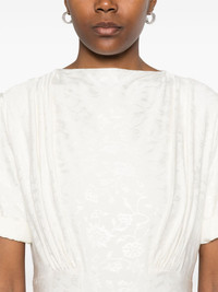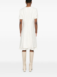 jacquard short-sleeve dress Highlights - Off-white - Rear button fastening - Layered design - Draped detailing Made in Italy Composition Lining: Viscose 100% Outer: Viscose 96%, Elastane 4% SIZE & FIT Model measurements Height 5 ft 11 in(1.8 m) Bust/Chest 31.49 in(80 cm) Hips 36.61 in(93 cm) Waist 24.4 in(62 cm) FittingInformation Designed for a close fit at the chest and waist with a loose fit at the hip Made from a midweight stretch fabric, this piece offers elasticity and flexibility when worn