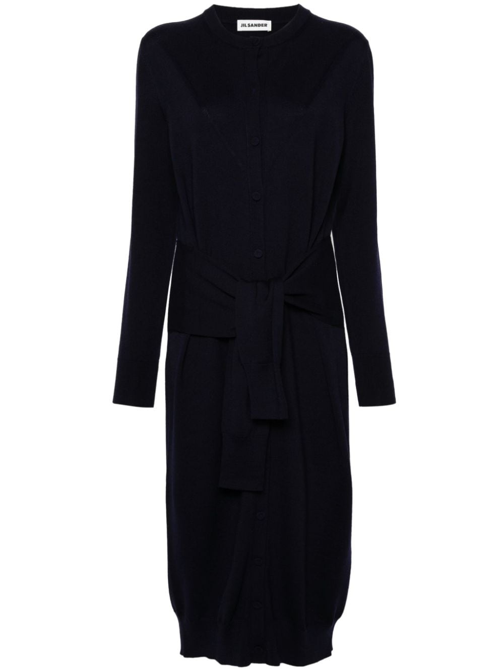 knit dress Highlights - Navy blue - Wool - Knitted construction - Crew neck - Front button fastening - Sleeveless - Decorative long sleeves with ribbed cuffs - Tie-fastening long sleeves at the waist - Pencil silhouette - Ribbed straight hem - Mid-length Made in Italy Composition Wool 100% SIZE & FIT Model measurements Height 5 ft 9 in(1.75 m) Bust/Chest 32.67 in(83 cm) Hips 36.22 in(92 cm) Waist 24.8 in(63 cm) FittingInformation Designed for a relaxed fit, this piece allows for comfort and movement when worn The adjustable tie waist gives a more adaptable and personalised fit Made with a midweight knit, this piece offers some stretch This piece fits true to size – take your usual size