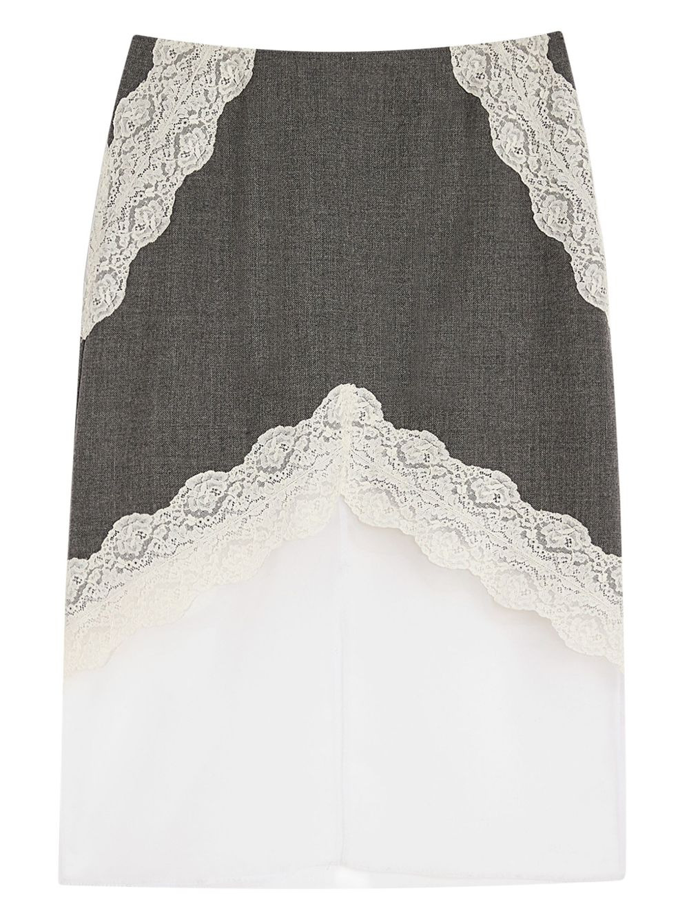 lace-trimmed layered skirt Highlights - Grey - Sheer overlay - Scalloped lace detailing Made in Italy Composition Wool 100% Washing instructions Read Manufacturer Guidelines