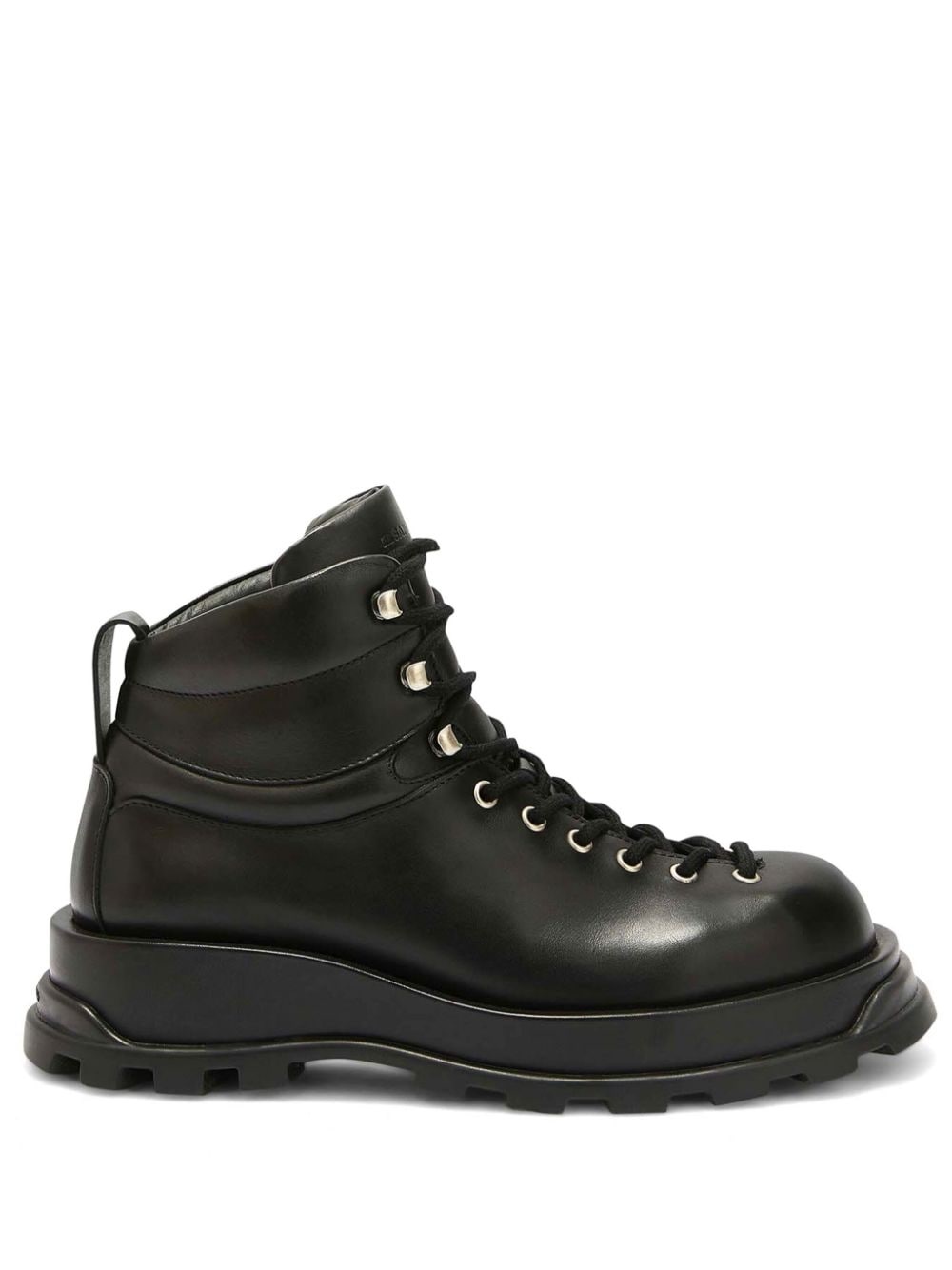 leather combat boots Highlights - Black - Calf leather - Round toe - Front lace-up fastening - Pull-tab at the heel - Vibram® sole - Chunky rubber sole Made in Italy Composition Leather 100%