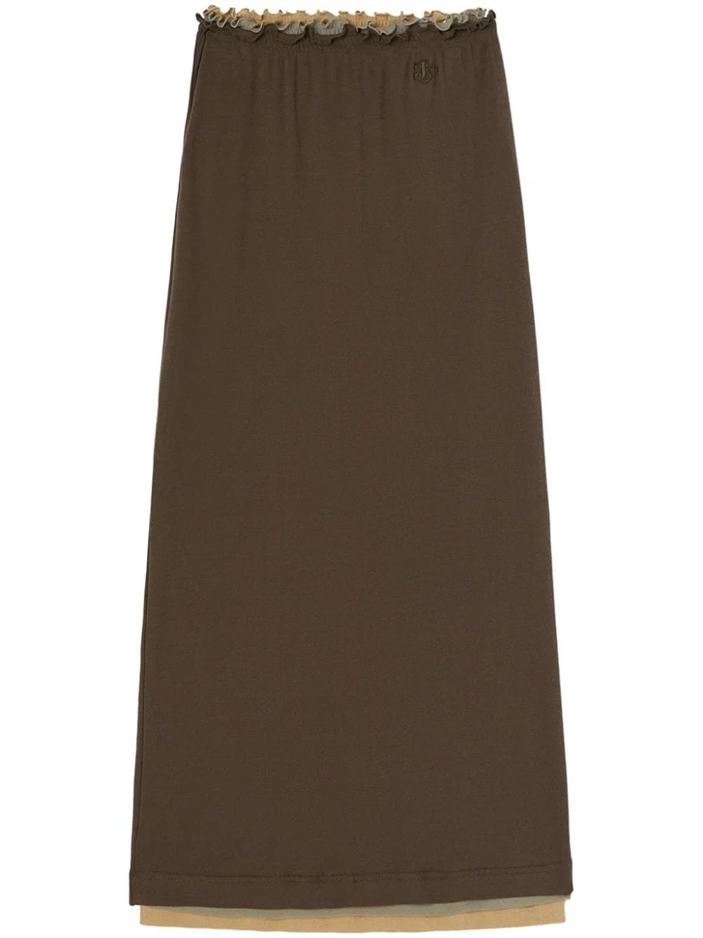 layered cotton midi skirt Highlights - Brown/olive green/sand brown - Cotton - Layered design - Elasticated waistband - Ruffled detailing - Embroidered logo to the front - Straight hem - Calf length - Set of three Made In Italy Composition Cotton 100% SIZE & FIT Measurement HIPS 30.7 in(78 cm) LENGTH 29.52 in(75 cm) WAIST 21.25 in(54 cm) FittingInformation This midi-length skirt is intended to be worn just below the waist Made from a midweight non-stretch fabric, this piece offers minimal elasticity when worn Washing instructions Read Manufacturer Guidelines