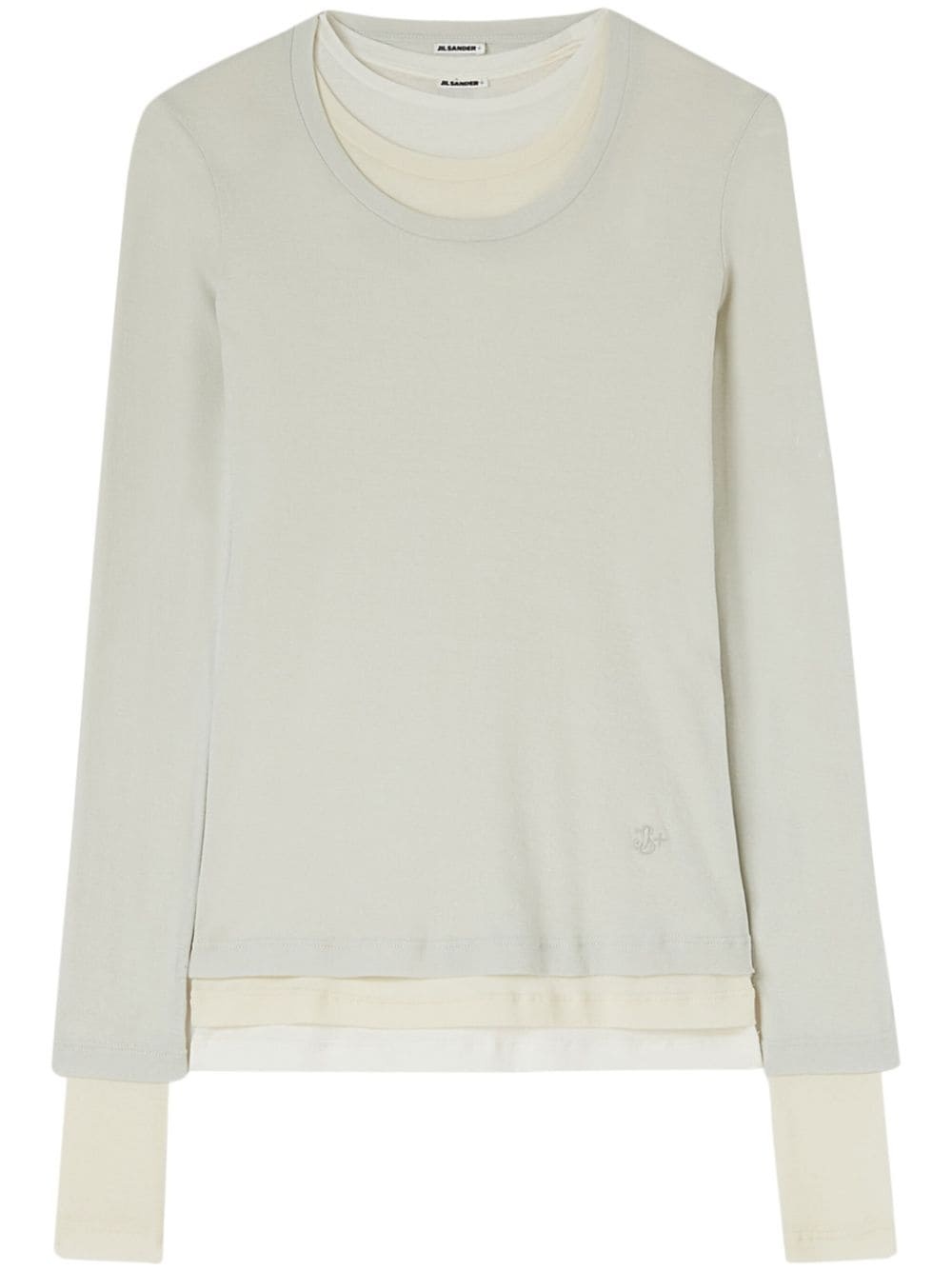 layered cotton T-shirt Highlights - Beluga grey - Cotton - Jersey texture - Embroidered logo to the side - Layered design - Crew neck - Long sleeves - Straight hem Made in Italy Composition Cotton 100% Washing instructions Read Manufacturer Guidelines