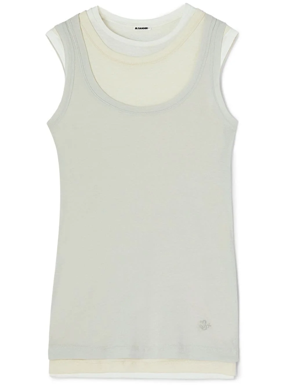 layered cotton tank top Highlights - Beluga grey - Cotton - Jersey texture - Embroidered logo to the side - Layered design - Crew neck - Sleeveless - Straight hem Made in Italy Composition Cotton 100% SIZE & FIT FittingInformation Designed for a slim fit that sits just away from the body offering a close yet comfortable fit Made from a midweight non-stretch fabric, this piece offers minimal elasticity when worn