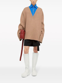 layered-design wool-blend jumper Highlights - Beige/electric blue - Wool-cotton blend - Knitted construction - Layered design - High neck - Half front zip fastening - Drop shoulder - Long wide sleeves - High-low hem Made in Italy Composition Wool 55%, Cotton 35%, Polyamide 10% Washing instructions Read Manufacturer Guidelines