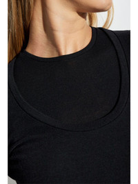layered wool dress Highlights - Black - Virgin wool - Layered design - Crew neck - Long sleeves - Slim cut - Calf-length - Straight hem Made in Italy Composition Virgin Wool 100% Washing instructions Read Manufacturer Guidelines