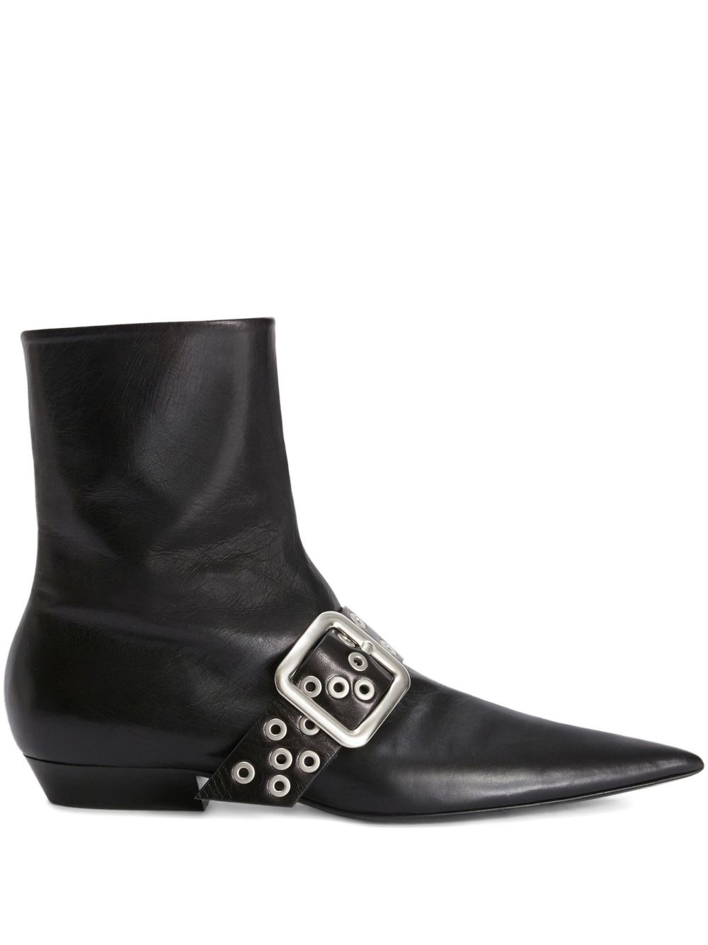 leather ankle boots Highlights - Black - Leather sole - Side zip fastening - Decorative buckle detail - Pointed toe Made in Italy Composition Lining: Calf Leather 100% Sole: Calf Leather 100% Outer: Goat Skin 100%