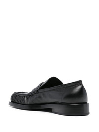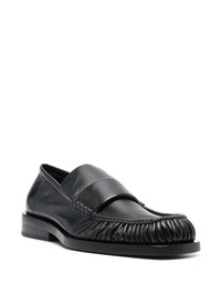 leather loafers Highlights - Black - Square toe - Raised seam detail - Ruched detailing - Low stacked heel Made in Italy Composition Sole: Rubber 100%, Calf Leather 100% Lining: Calf Leather 100% Outer: Calf Leather 100%
