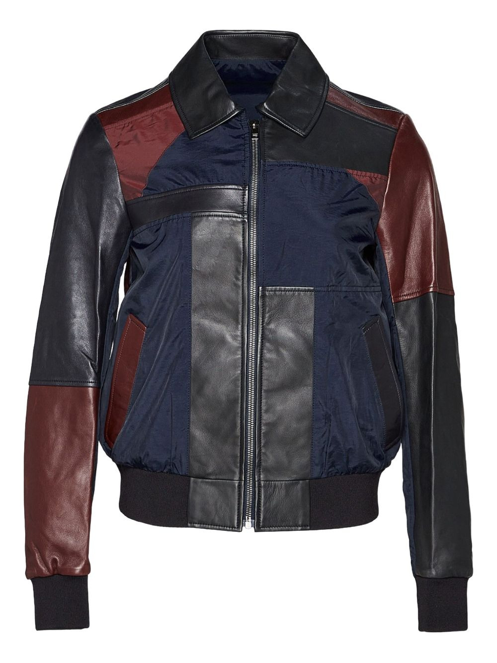 leather-patchwork bomber jacket Highlights - Burgundy - Leather panels - Zip fastening - Ribbed cuffs Imported Composition Leather 100% Washing instructions Read Manufacturer Guidelines