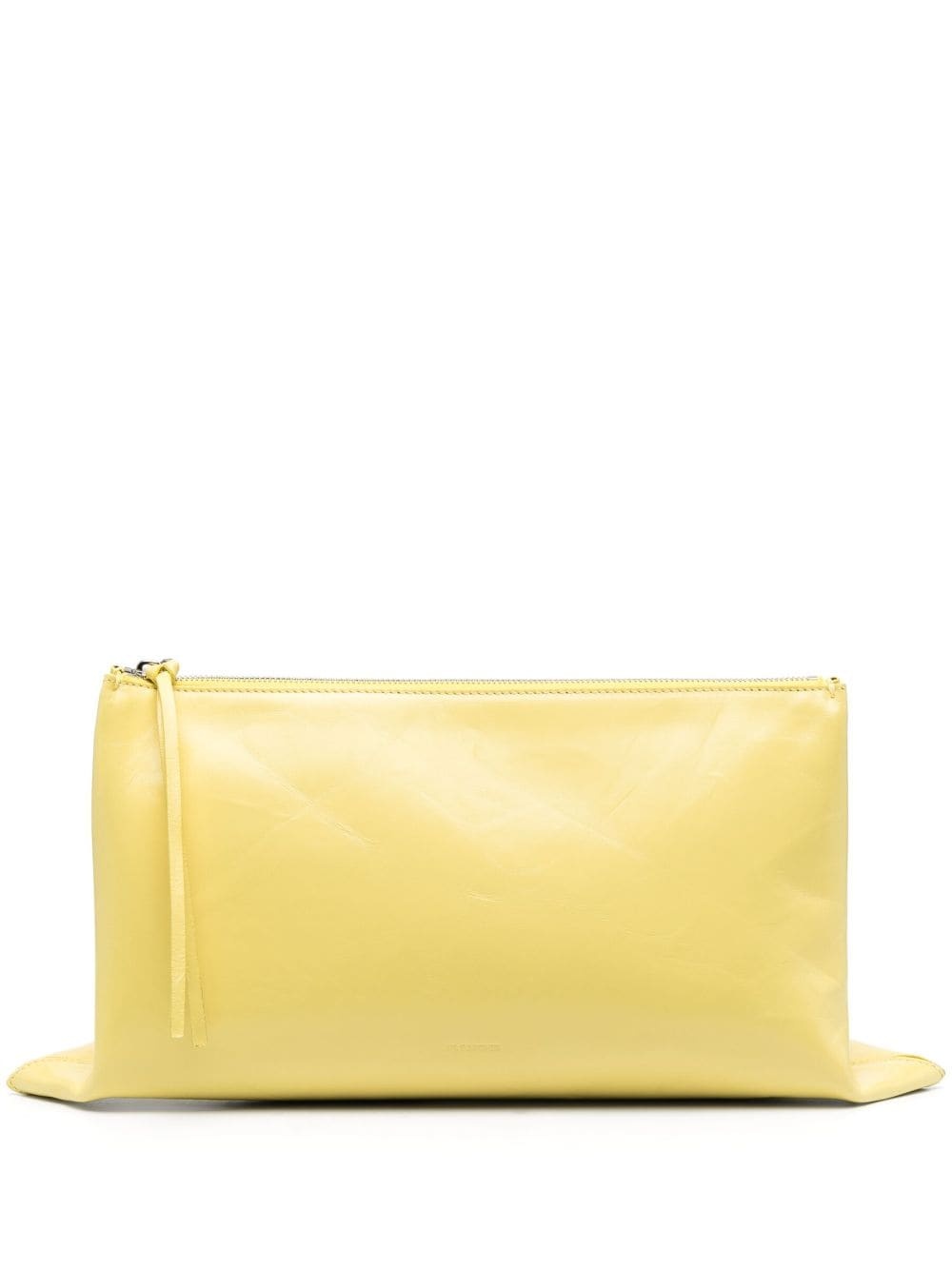 logo-debossed clutch bag Jil Sander's minimalist aesthetic is showcased with this clutch. Crafted from supple black leather, it's simply decorated with a debossed logo at the front. The uplifting pastel-yellow hue lends a burst of vibrant colour. Highlights - Pastel yellow - Calf leather - Debossed logo to the front - Top zip fastening - Internal patch pocket - Full lining Made in Italy Composition Outer: Calf Leather 100% SIZE & FIT Model measurements Height 5 ft 11 in(1.8 m) Bust/Chest 31.88 in(81 cm) Hips 35.03 in(89 cm) Waist 24.01 in(61 cm) Measurement DEPTH 3.54 in(9 cm) HEIGHT 6.69 in(17 cm) WIDTH 12.99 in(33 cm)