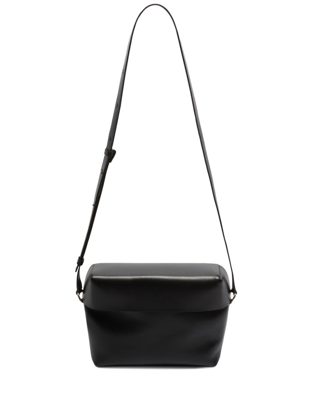 leather shoulder bag Minimalist designs and purposeful detailing are signature to Jil Sander. Seen on this black crossbody bag from the AW23 collection, the boxy silhouette boasts an embossed logo to the lid-covered top along with a slender shoulder strap. Highlights - Black - Calf leather - Smoothing finish - Embossed logo to the front - Adjustable shoulder strap - Foldover top - Top zip fastening - Main compartment Made in Italy Composition Lining: Ovine Leather (top grain) 100% Outer: Calf Leather 100% SIZE & FIT Model measurements Height 6 ft 2 in(1.87 m) Bust/Chest 35.82 in(91 cm) Hips 35.43 in(90 cm) Waist 27.95 in(71 cm) Measurement DEPTH 3.54 in(9 cm) HEIGHT 7.87 in(20 cm) STRAP 21.25 in(54 cm) WIDTH 9.44 in(24 cm)