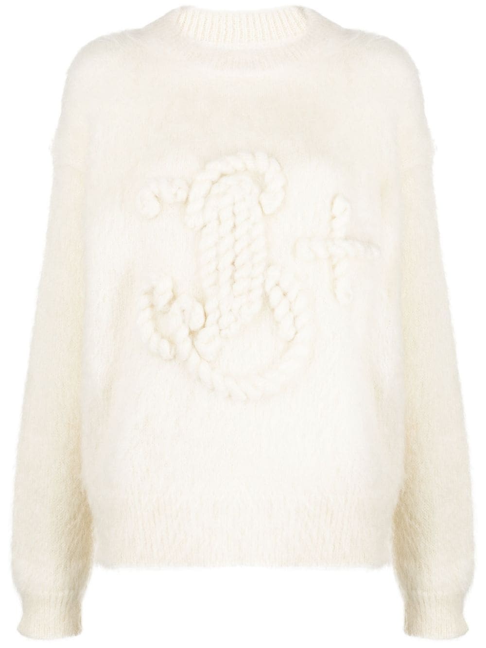 logo-embroidered chunky-knit jumper Highlights - Cloud white - Mohair blend - Knitted construction - Chunky knit - Embroidered logo to the front - Crew neck - Long sleeves - Straight hem Made in Italy Composition Mohair 80%, Polyamide 20% SIZE & FIT Model measurements Height 5 ft 10 in(1.78 m) Bust/Chest 32.67 in(83 cm) Hips 35.43 in(90 cm) Waist 23.22 in(59 cm) FittingInformation Designed to be unstructured, offering a loose fit throughout Made with a midweight knit, this piece offers some stretch This piece fits true to size – take your usual size Washing instructions Dry Clean Only