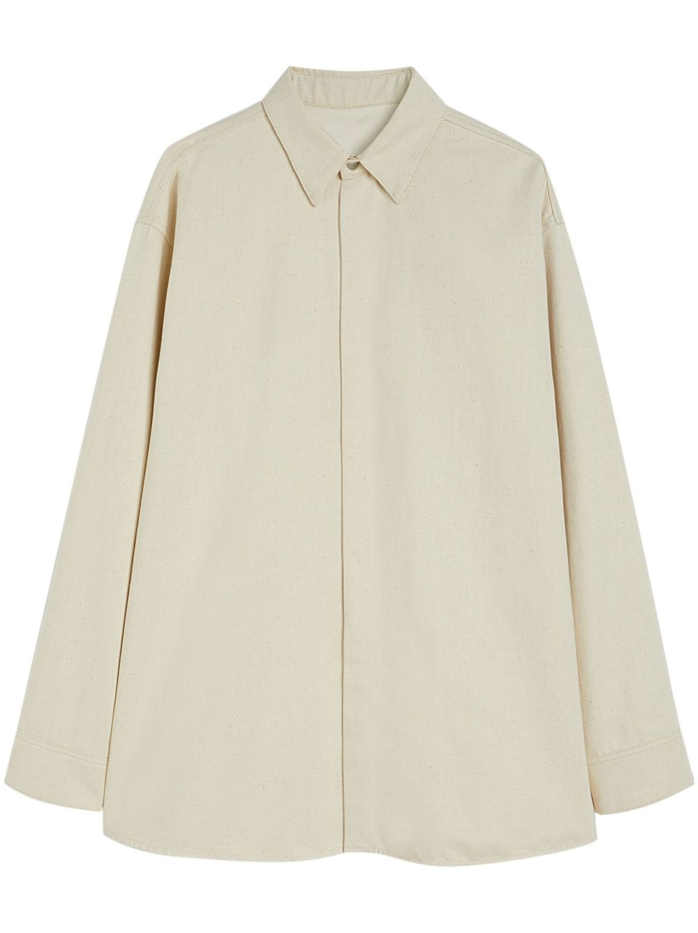 logo-patch denim shirt Highlights - White - Cotton - Denim - Front button fastening - Straight-point collar - Long sleeves - Buttoned cuffs - Logo patch to the rear - Curved hem Imported Composition Cotton 100%