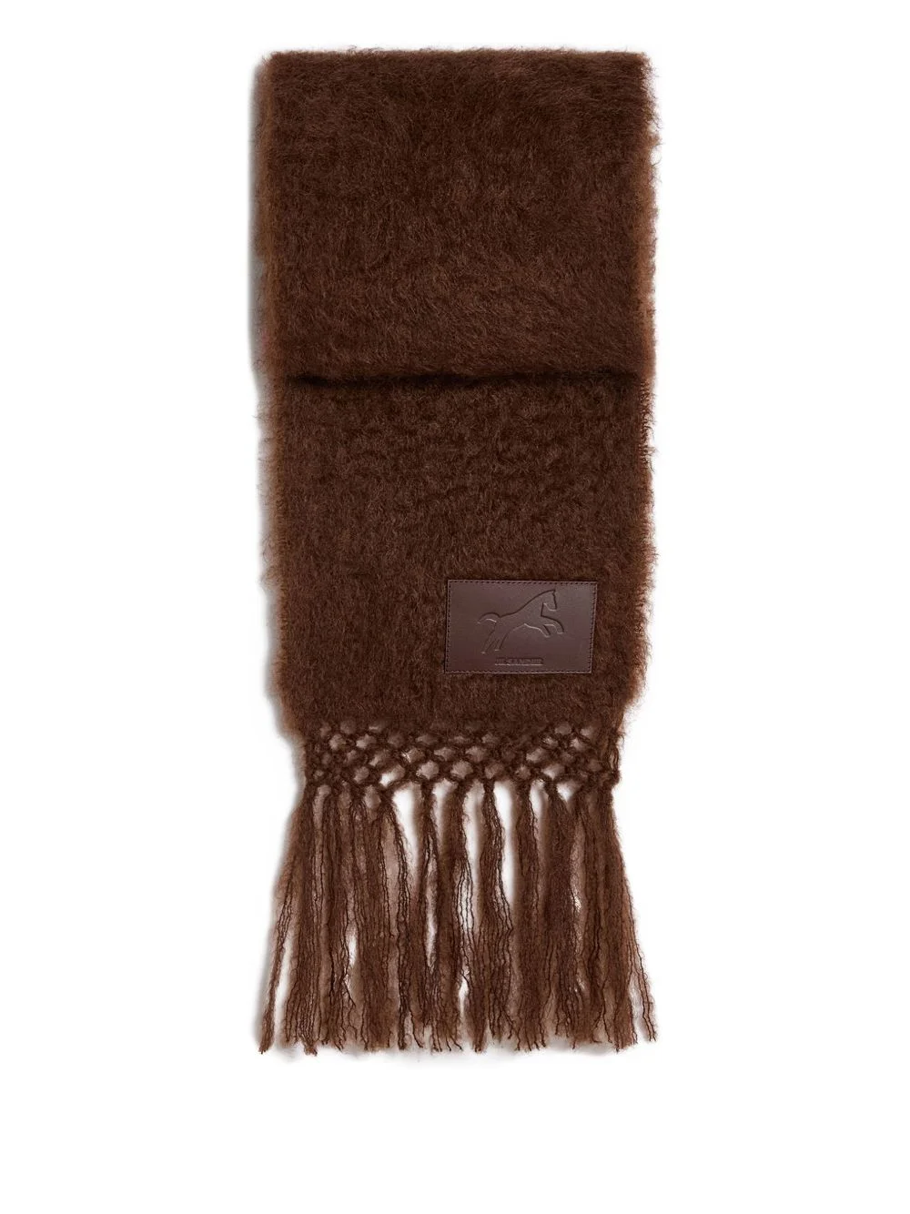 logo-patch fringed scarf Highlights - Brown - Wool blend - Debossed horse symbol - Logo detail - Fringed hem Made in Italy Composition Mohair 73%, Wool 24%, Polyamide 3% Washing instructions Read Manufacturer Guidelines