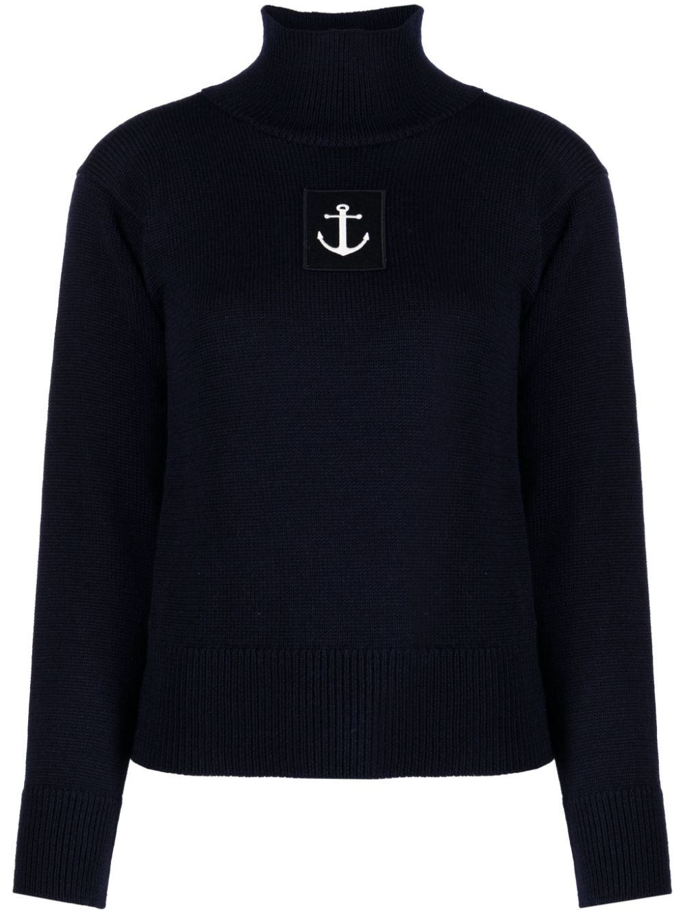 logo-patch high-neck jumper Highlights - Midnight blue - Wool - Knitted construction - Logo patch to the front - High neck - Long sleeves - Ribbed hem Made in Italy Composition Wool 100% SIZE & FIT Model measurements Height 5 ft 10 in(1.78 m) Bust/Chest 29.13 in(74 cm) Hips 35.43 in(90 cm) Waist 23.62 in(60 cm) FittingInformation Designed for a slim fit that sits just away from the body offering a close yet comfortable fit The ribbed hem offers a close, comfortable fit Made with a heavyweight knit, this piece offers some stretch This piece fits true to size – take your usual size Measurement BUST 31.49 in(80 cm) LENGTH 24.01 in(61 cm) Shoulder Width 15.35 in(39 cm) SLEEVE LENGTH 21.25 in(54 cm) WAIST 25.19 in(64 cm) Washing instructions Dry Clean Only