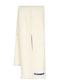logo-patch padded scarf Highlights - Ivory white - Feather down - Padded design - Logo patch to the front - Lateral holes - Wraparound style Made in Italy Composition Outer: Polyester 100% Lining: Feather Down 100% SIZE & FIT Measurement LENGTH 44.48 in(113 cm) WIDTH 8.66 in(22 cm) Washing instructions Dry Clean Only