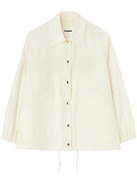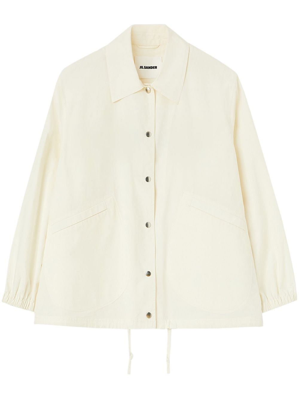 logo-print cotton shirt jacket Highlights - Beige - Cotton - Logo print to the rear - Spread collar - Front press-stud fastening - Long sleeves with elasticated cuffs - Two diagonal pockets to the sides - Straight drawstring hem Made in Italy Composition Cotton 100%