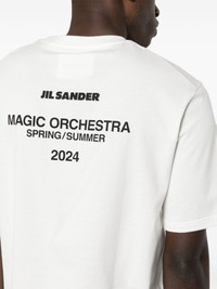 logo-print cotton T-shirt A testament to Jil Sander’s minimalist aesthetic, this T-shirt is cut from white cotton to a classic crew-neck silhouette. It's simply decorated with the brand's logo and the name of the SS24 collection on the back. Highlights - Off-white - Cotton - Jersey texture - Logo print to the rear - Crew neck - Short sleeves - Straight hem Made in Italy Composition Cotton 100% SIZE & FIT Model measurements Height 6 ft 0 in(1.84 m) Bust/Chest 35.82 in(91 cm) Hips 37 in(94 cm) Waist 28.34 in(72 cm) FittingInformation Designed for a relaxed fit, this piece allows for comfort and movement when worn Made from a midweight non-stretch fabric, this piece offers minimal elasticity when worn This piece fits true to size – take your usual size Washing instructions Hand Wash