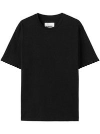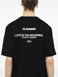 logo-print cotton T-shirt Demonstrating the minimalist aesthetic Jil Sander is renowned for, this black cotton T-shirt is detailed with contrasting white seasonal logo lettering at the rear. Highlights - Black/white - Cotton - Logo print to the rear - Crew neck - Short sleeves - Straight hem Made in Italy Composition Cotton 100% SIZE & FIT FittingInformation Designed to be unstructured, offering a loose fit throughout Made from a midweight non-stretch fabric, this piece offers minimal elasticity when worn This piece fits true to size – take your usual size Washing instructions Read Manufacturer Guidelines